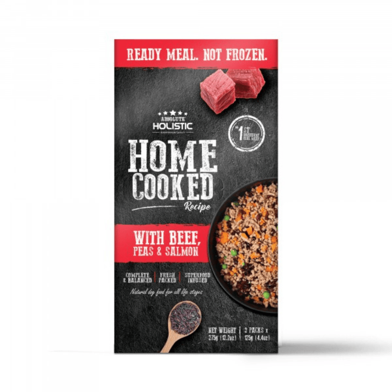 Absolute Holistic® Home Cooked Recipe with Beef, Peas & Salmon is formulated to meet the nutritional levels established by AAFCO dog food nutrient profiles for all life stages including growth of large size dogs (70 lbs or more as an adult)