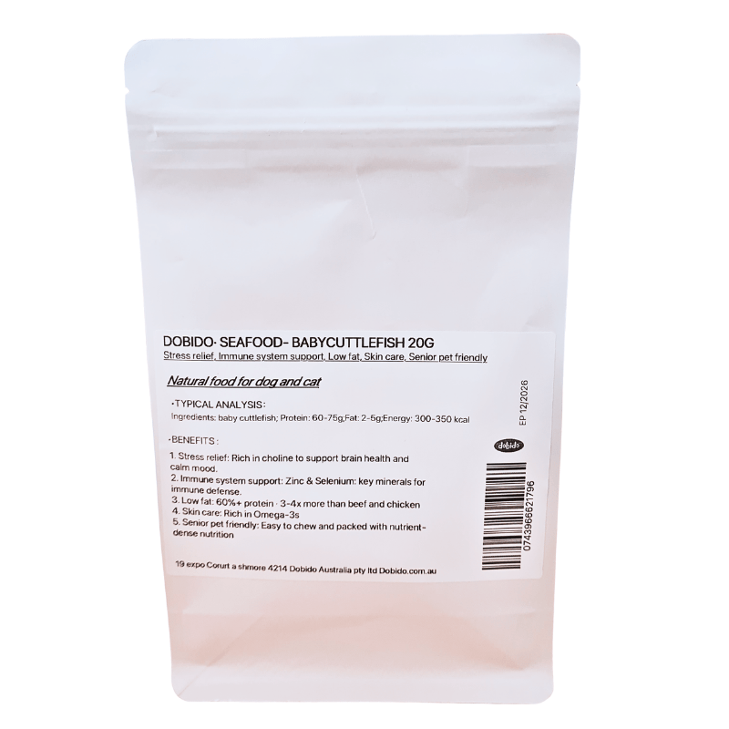 Give your furry friend a tasty, natural, and nutrient-packed treat with DOBIDO Freeze-Dried Baby Cuttlefish. Made from 100% premium baby cuttlefish, this single-ingredient snack is rich in protein, naturally low in fat, and gently freeze-dried to lock in essential nutrients and flavour. Perfect for both dogs and cats, especially seniors or pets with sensitive needs.