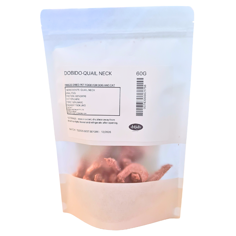 Give your furry friend a crunchy, natural, and nutrient-dense snack with DOBIDO Freeze-Dried Quail Neck Treats. Made from 100% whole quail necks, this single-ingredient treat is rich in high-quality protein, naturally packed with minerals, and gently freeze-dried to preserve freshness and nutritional value. Perfect for both dogs and cats who love a satisfying chew.