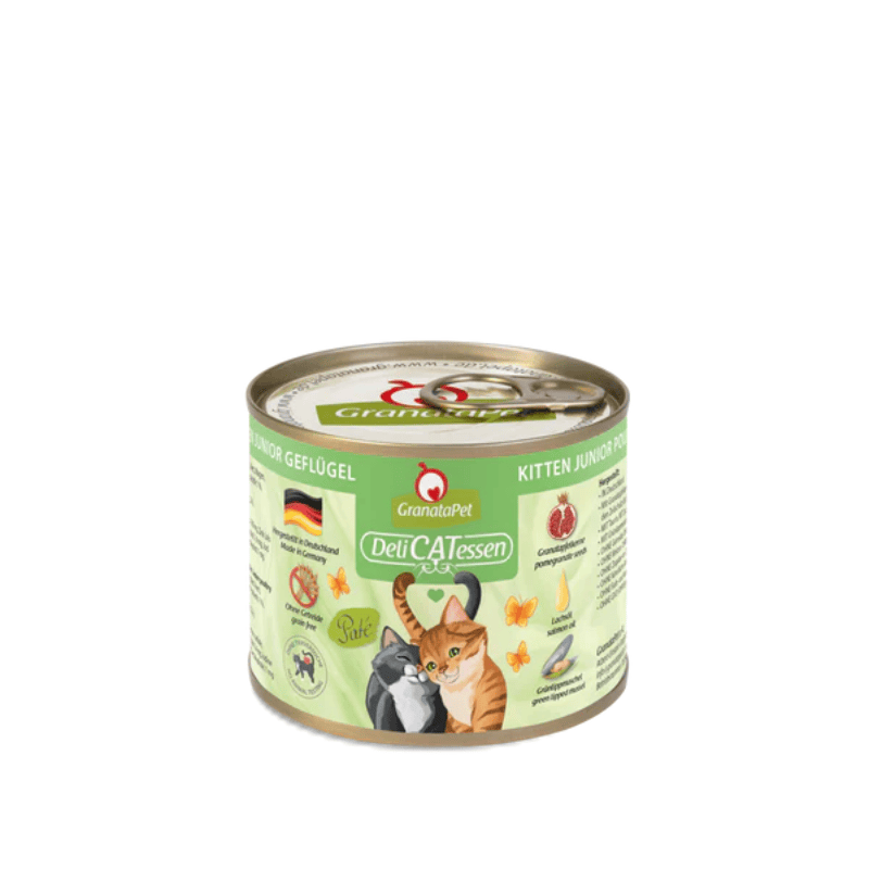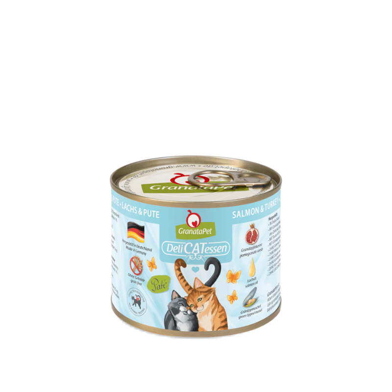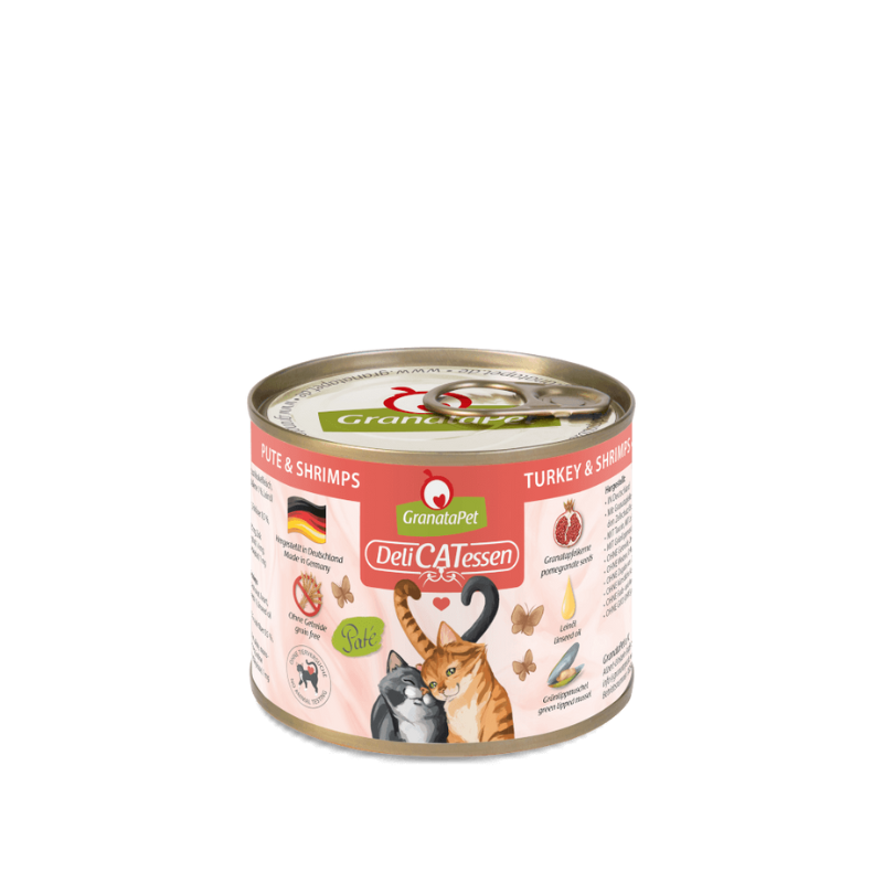GranataPet DeliCATessen wet food is a high-quality complete food for cats - without grains, with a high meat content, pomegranate seeds, valuable oils, green-lipped mussels and taurine. Since cats are predators and carnivores by nature, their digestive system is also designed accordingly. Grain is difficult for cats to digest and can hardly be utilized. GranataPet therefore avoids grains in its pet food and thus ensures an optimal, nature-oriented diet.