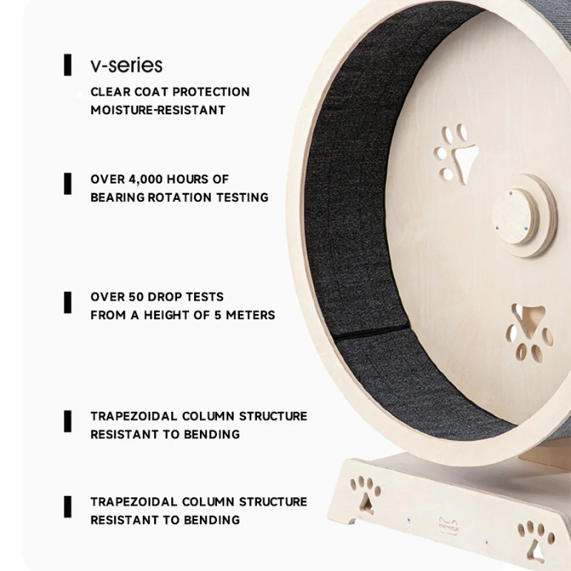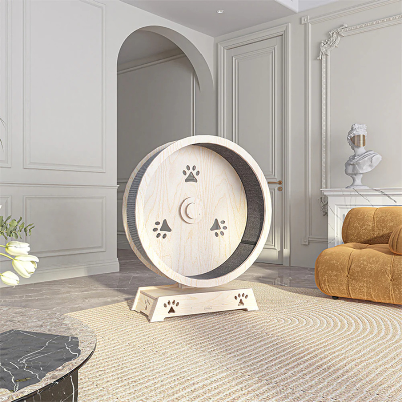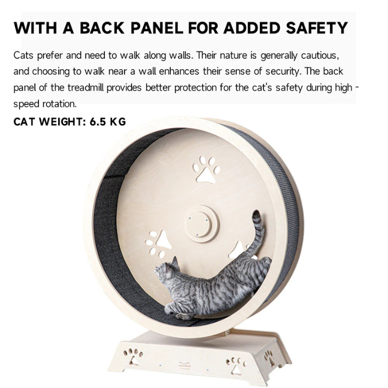 The HONEYPOTCAT Fit & Fun Active Runner Wood Cat Wheel is a thoughtfully designed exercise toy for cats, promoting fitness and reducing stress through fun and engaging activity. Its smooth-rolling, imported bearings and replaceable runway carpet ensure safety and durability, while the upgraded base offers superior stability. Made from E0-grade eco-friendly materials, it arrives fully assembled and ready for use. This sleek and functional design encourages daily exercise, improves coordination, and serves as both an interactive pet accessory and a stylish addition to your home.