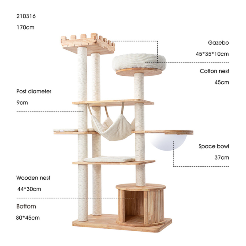 The HONEYPOTCAT MZ Grand Elegance Cat Castle is the pinnacle of luxury for your feline friend. Towering at 170cm, this multi-level cat tree includes a futuristic space capsule, plush resting areas, and robust scratching posts. Designed to blend elegance and functionality, it offers endless play, relaxation, and climbing opportunities for your cat.