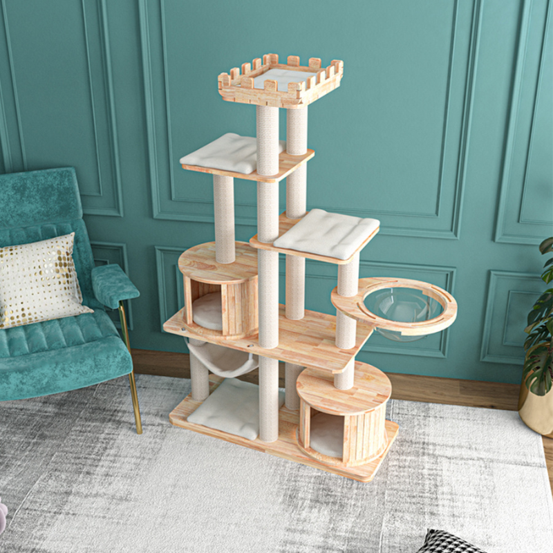 Give your feline the royal treatment with the HONEYPOTCAT MZ Grand Elegance Cat Castle. This premium multi-level cat tree is crafted from durable rubber wood and designed with a variety of features to entertain, relax, and satisfy your cat’s needs. The elegant design seamlessly blends functionality with aesthetics, making it a luxurious addition to your home.