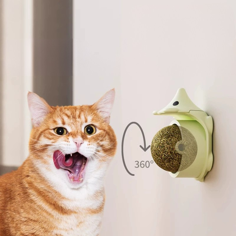 Lickable Catnip Rotating Ball: Infused with catnip to attract cats, helping reduce stress and boost appetite.