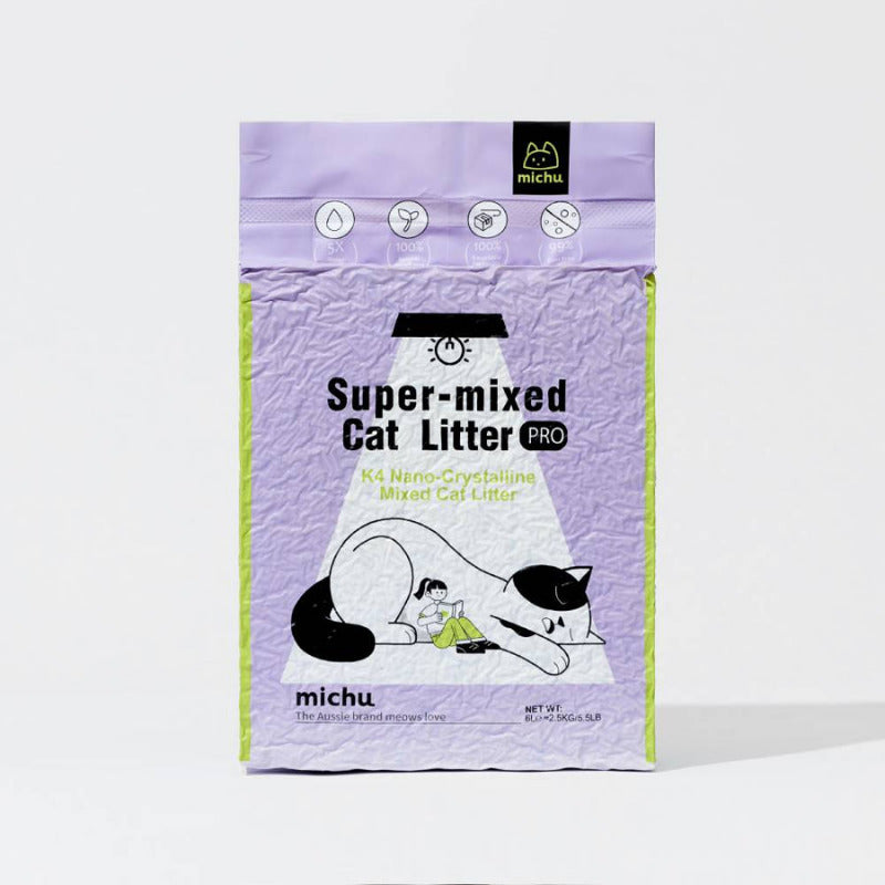 Super strong odor control Michu’s Mixed Cat Litter contains K4 nano-ore crystals with a higher number of nano-scale micropores that boost odor absorption by more than ten times!