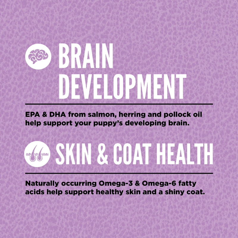 Help your large breed puppy thrive with the power of protein-rich recipes that provide peak nourishment. Large breed puppies stay nourished on a Biologically Appropriate diet packed with fresh or raw animal ingredients to support peak development, and this diet is tailored to their unique needs. ORIJEN® Puppy Large diet is crafted with 85%* quality animal ingredients like fresh or raw free-run** chicken and turkey, and wild-caught fish. Packed with WholePrey animal ingredients like organs and bone, ORIJEN food is made with the most nutrient-dense, succulent parts of the prey to deliver the nutrition puppies need. The nourishing animal ingredients help support your large breed puppy’s Brain Development and Skin and Coat Health with Tailored Nutrition. The result is a diet for your canine companion that is beyond comparison.