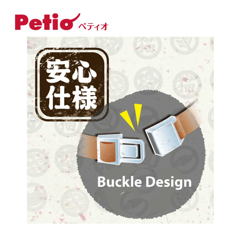 A fashionable cat collar with a Japanese taste. When the collar therfered by external force, it will unlock automatically. It prevent accident injure or suffocation in extreme situation. It comes with reflective bell and name tag