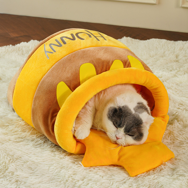 Your cat doesn’t need a mansion—just a cozy, dreamy nook! The Pikapet Honeypot Cat Bed features an adorable honey jar design in warm yellow tones that brings both cuteness and comfort to your pet’s life.