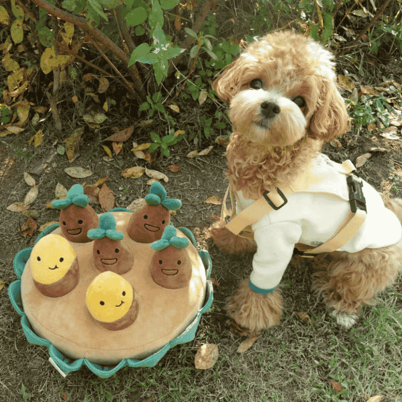 This adorable sweet potato dog toy is designed for both fun and function! It encourages sniffing and pulling play, helping your dog stay mentally stimulated. Hidden "sweet potatoes" can be pulled out from the main plush patch, creating an engaging challenge for your pup. Made with soft plush materials, it's perfect for cuddling or playing, and ideal for small to medium-sized dogs.