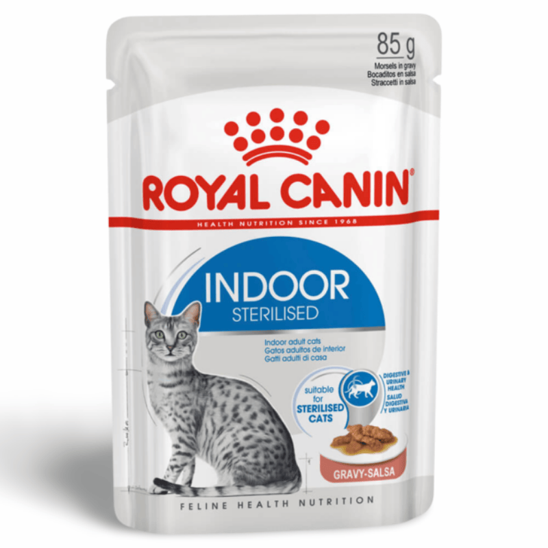 Formulated to meet the specific needs of indoor neutered cats, ROYAL CANIN® Indoor Sterilised in Gravy supports overall health while satisfying your cat's natural preferences. The recipe features a precise blend of protein, fat, and carbohydrates to help maintain digestive comfort, urinary wellness, and an ideal weight.