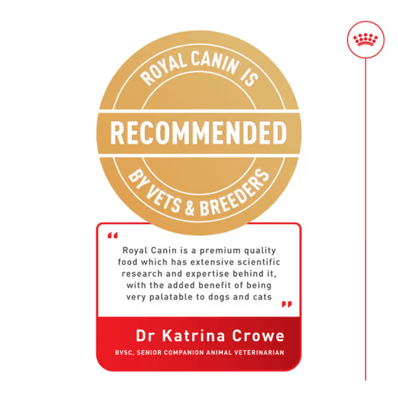 Meat and animal derivatives, cereals, minerals, derivatives of vegetable origin, oils and fats, yeasts. Additives (per kg): Nutritional additives: Vitamin D3: 160 IU, Vitamin C: 30 mg, Iron: 9 mg, Iodine: 0.25 mg, Copper: 2 mg, Manganese: 2.7 mg, Zinc: 27 mg. Technological additives: Clinoptilolite of sedimentary origin: 2 g. Analytical Constituents: Protein 8.6%, Fat content 5.5%, Crude ash 2%, Moisture 80.4% Please Note: Royal Canin takes pride in ensuring the scientific reliability of all product information. The information in this product listing was true and accurate at the time of publication. However, please note that from time to time, for example due to ingredient availability or a change in sourcing factory within our global factory network for the purpose of ongoing supply, it is necessary to make product changes at short notice, and there may be some delays in updating the information in our product materials.