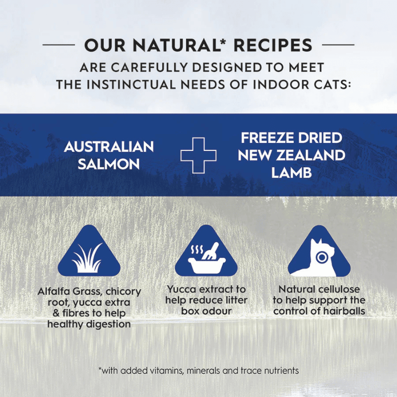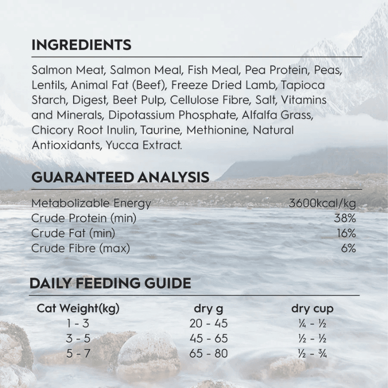 TRILOGY™ Australian Salmon with Freeze Dried New Zealand Lamb pieces is formulated to meet the nutritional levels established by the AAFCO Cat Food Nutrient Profiles for Adult Maintenance.