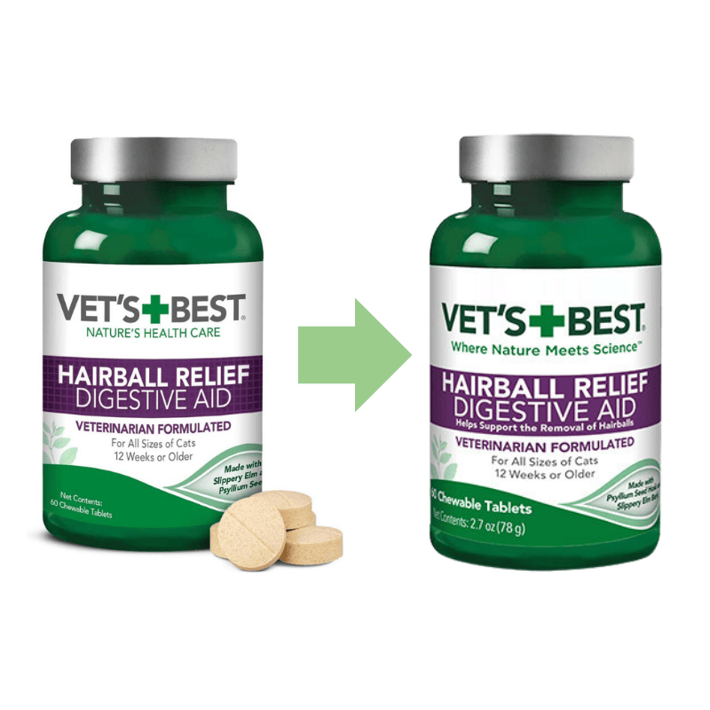 - Vet's Best Hairball Relief is veterinarian formulated with a blend of plant-based ingredients, including apple fiber, papaya extract, psyllium seed, marshmallow root and slippery elm.