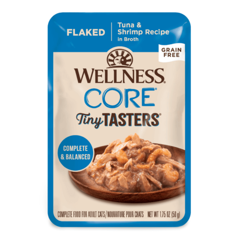 For a lifetime of wellbeing, each Wellness® CORE® Tiny Tasters® Flaked recipe is crafted with delicious flakes of real fish that cats naturally love and need to live their best life.