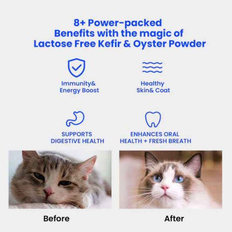 Daily booster for cats of all ages, breeds, and sizes. Supports gut health, immunity, reduces seasonal allergies, and promotes overall well-being. Perfect for treats, toppers, and nutritional supplements! Consult your veterinarian regularly for further information and advice.