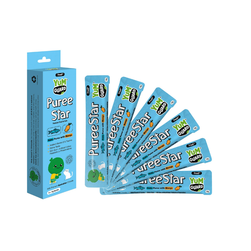 YumGuard Puree Star series combines lean, high-protein hake with sweet, juicy mango, rich in vitamins A and C, to offer cats a tropical fruit aroma paired with ocean-fresh nutrition. The smooth, creamy texture makes it an irresistible daily treat or a flavorful meal topper.
