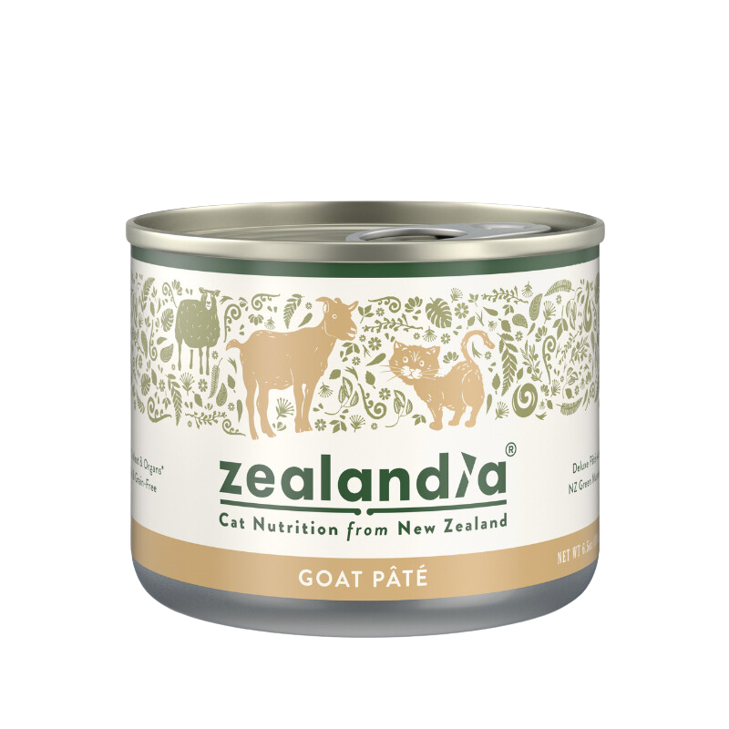 Deboned Goat, Water Sufficient for Processing, Lamb Liver, Lamb Lung, Lamb Green Tripe, Lamb Heart, Lamb Kidney, New Zealand Green Mussel, Dried Yeast, Carrot, Cassia Gum, Agar-Agar, Salmon Oil, Calcium Carbonate, Guar Gum, Potassium Chloride, Choline Chloride, Taurine, Iron Proteinate, Zinc Glycine Complex, Niacin Supplement, Alpha-Tocoperol Acetate, Selenium Yeast, Manganese Proteinate, Copper Glycine Complex, Thiamine Mononitrate, Calcium Pantothenate, Riboflavin, Pyridoxine Hydrochloride, Vitamin A Acetate, Biotin, Vitamin B12 Supplement, Calcium Iodate, Folic Acid, Cholecalciferol.